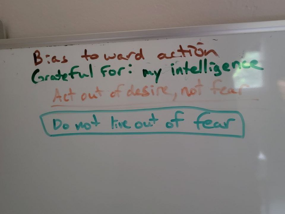 During my journey, I realized how much fear has controlled my life. Fear kept me from trying things that might have been fun, from forming deeper relationships, and from truly living in the moment. But I want to change that. I wrote on my whiteboard that this would be the year fear stopped defining my actions. I took the leap, and after two months of lessons, I performed at a recital.
